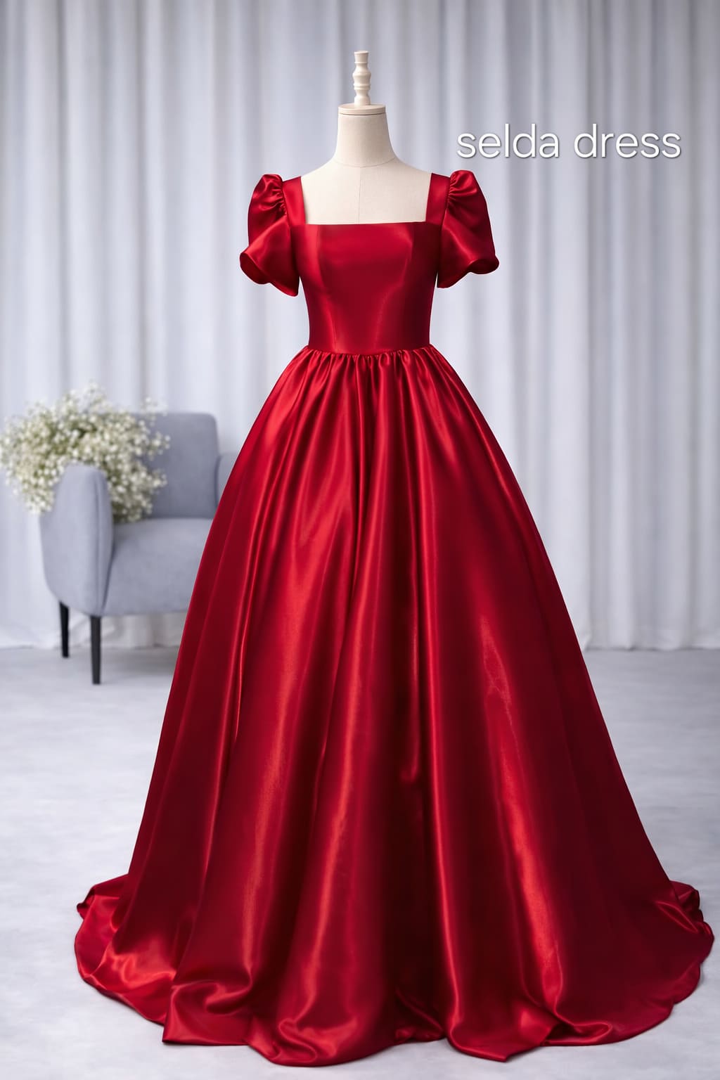 لباس مجلسی قرمز ساتن پفی | جذابترین مدل لباس مجلسی زنانه ۱۴۰۴ کد ۱۹۹۲