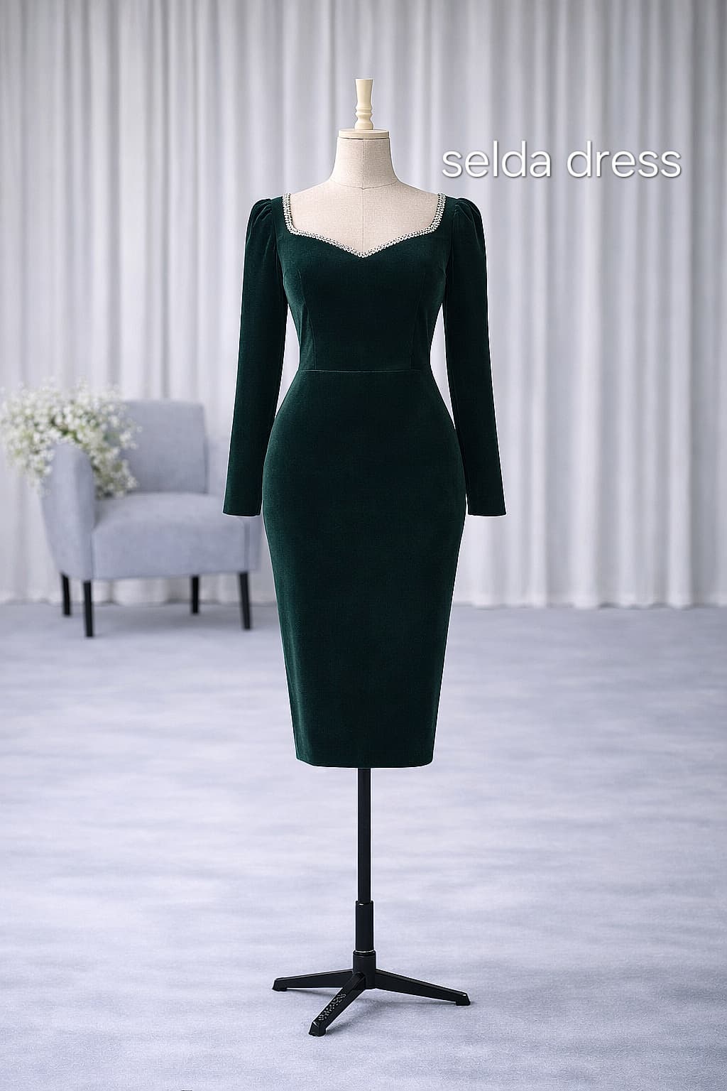 لباس مجلسی مخمل سبز یقه نگیندار آستینبلند – مدل جدید ۲۰۲۵ کد ۱۹۹۰