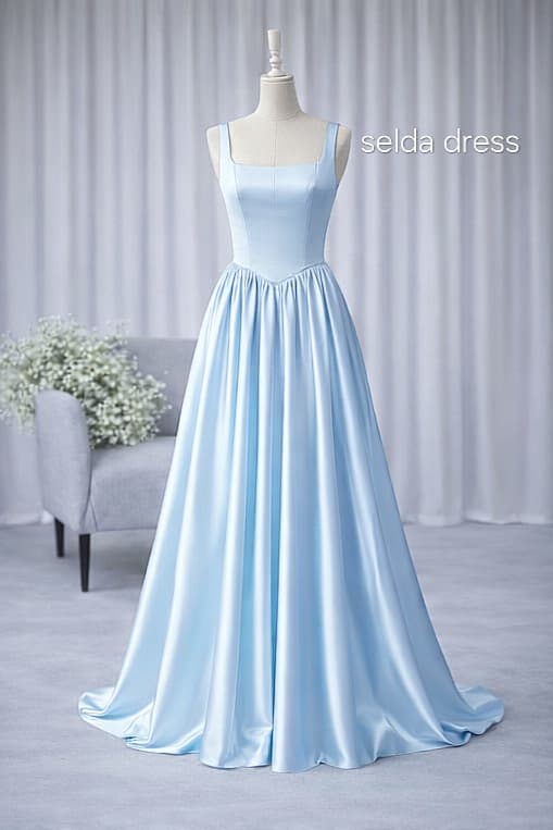 پیراهن مجلسی بلند ساتن زنانه یقه مربعی | لباس شب شیک و لاکچری ۲۰۴۵