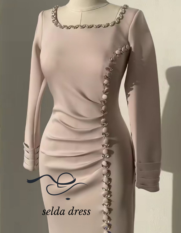 این لباس مجلسی صورتی جذاب با طراحی منحصربهفرد و سنگدوزیهای ظریف در قسمت یقه و جلوی لباس، انتخابی لوکس برای مجالس رسمی، عقد و مهمانیهای شب است. فرم جذب و برش اسلیمفیت باعث میشود اندام شما کاملاً خوشفرم دیده شود.