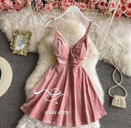 پیراهن مجلسی کوتاه مخمل فانتزی ۱۶۷۵
