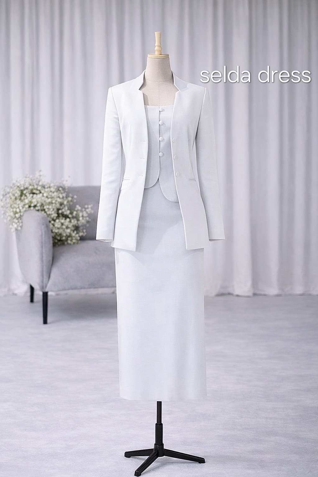 ست رسمی زنانه سه تکه (کت، تاپ و دامن) رنگ طوسی روشن – استایل شیک ۲۰۲۵ کد ۱۹۸۹